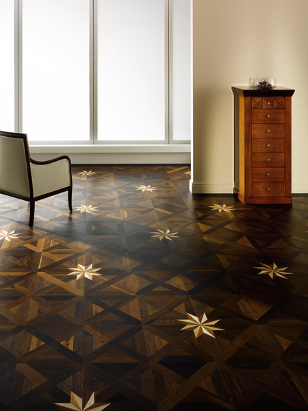欧洲古典文化起源于古希腊、古罗马时代,后经过中世纪的消沉低落和文化复兴时期的蓬勃发展,成为人类现代文明发展的基石,为当代文化艺术的创作提供了大量历史文物参照和文化思想源泉。TEKA艺术地板即是参照古罗马城堡、中世纪基督教堂、欧洲皇室宫殿、以及大宫贵族庄园中的历史图案,由首席设计师RUDDA先生结合木材的性能特点,按390*390的黄金尺寸设计完成,并在欧盟注册了外观设计专利。